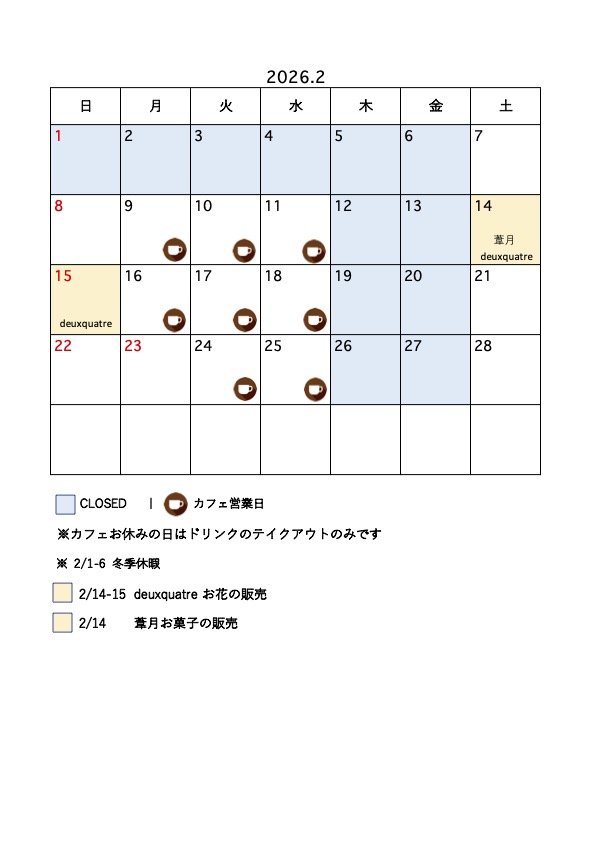 2月の営業予定をお知らせいたします。